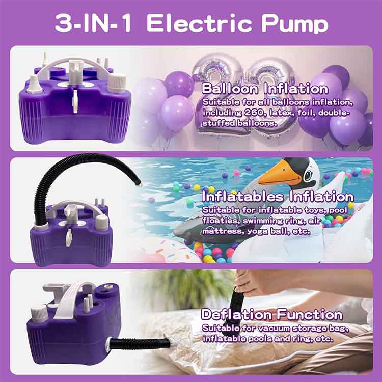 3 In 1 Electric Ballon Pumpe verwenden Technologie, um das Leben zu vereinfachen und Kreativität in Reichweite zu bringen. Egal, ob es sich um eine Familienversammlung, ein Feiertagsfeier, ein Abenteuer im Freien oder eine Lagerung zu Hause handelt, es ist ein Must-Have-Artefakt für Sie, um die Qualität Ihres Lebens zu verbessern! Holen Sie es sich jetzt und beginnen Sie eine neue Erfahrung mit effizienter und bequemer Inflation!