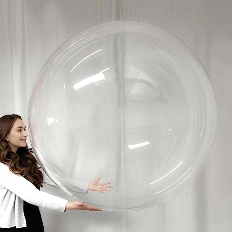 48 Zoll große, runde, durchsichtige Bobo-Ballons können sich an verschiedene Umgebungen anpassen. In Kombination mit 10 LED-Lichterketten und gefüllt mit Helium können sie einen Lichteffekt erzeugen. Diese Ballons können für kommerzielle Ausstellungen verwendet werden, um ein präzises Marketing zu erreichen; Sie können auch zum Füllen von Kinderfesten mit buntem Schaumstoff oder Federblättern verwendet werden. Bei einer kürzlichen Hochzeit wurden 100 maßgeschneiderte, runde, transparente 48-Zoll-Luftballons verwendet und erhielten großes Lob.