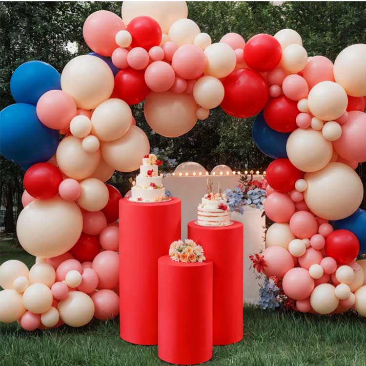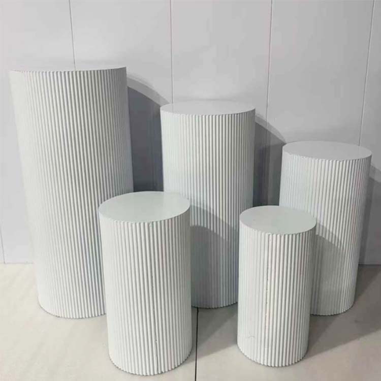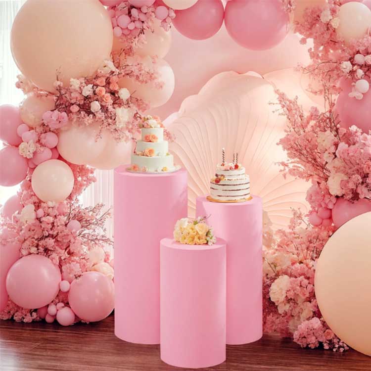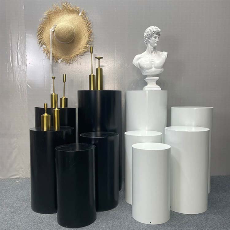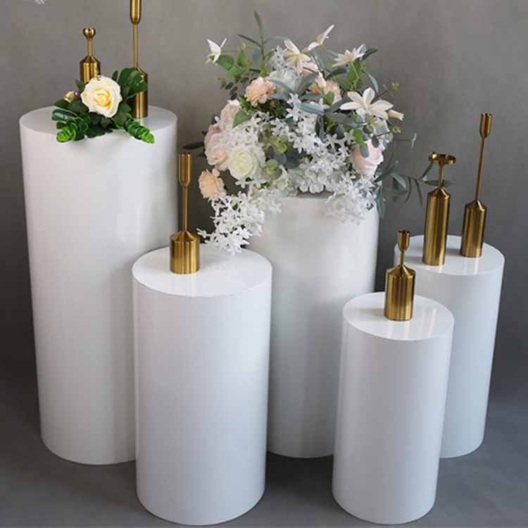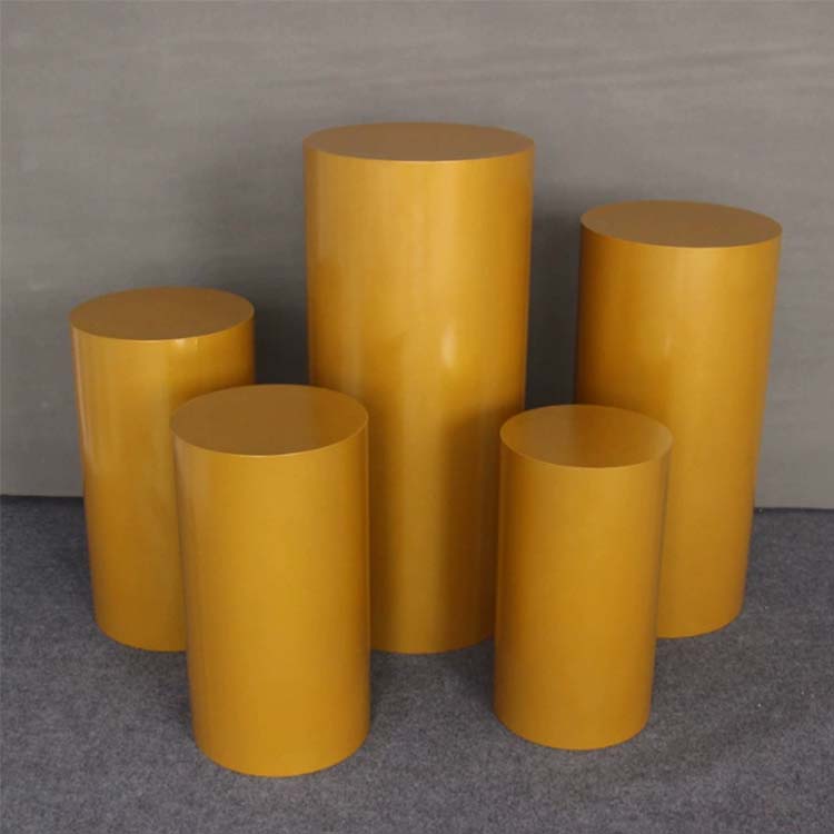 Der Desserttisch ist zylindrisch mit glatten, flachen Oberflächen an den Rändern. Es hat eine große Basis, einen stabilen Schwerpunkt und lässt sich nicht so leicht umkippen. Es ist korrosionsbeständig, oxidationsbeständig, strukturell stabil und verfügt über eine hohe Tragfähigkeit. Es ist in verschiedenen Farben erhältlich, darunter Elfenbeinweiß, Champagnergold und Vintage-Schwarz.