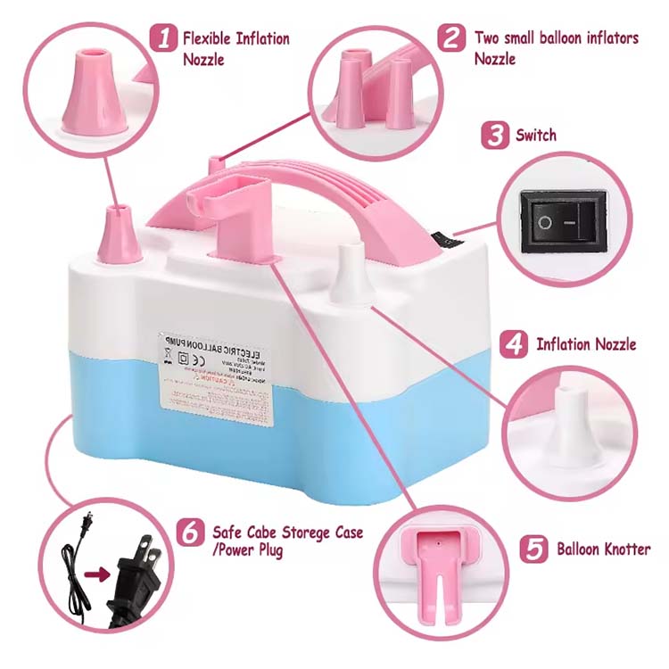 Nach dem Aufblasen des Ballons ist der Knotenprozess des Ballons oft Kopfschmerzen. Derelektrische Pumpe mit Knotter -DoppeldüseLöst dieses Problem geschickt. Der eingebaute Knoten ist exquisit gestaltet und einfach zu bedienen. Wickeln Sie beim Verwenden einfach den Schwanz des aufgeblasenen Ballons in eine bestimmte Richtung um den Knoten und ziehen Sie ihn vorsichtig, um den Knoten leicht zu binden. Vermeiden Sie die Probleme von Fingerschmerzen und Ballonleckagen, die beim manuellen Binden des Knotens auftreten können. Auch wenn es erstmals verwendet wird, kann es schnell genutzt werden, wodurch die Bequemlichkeit des Betriebs erheblich verbessert wird. Zum Beispiel benutzte das Personal bei einem Babybankett eine Elektropumpe mit einem Knoten, um eine große Anzahl von Luftballons schnell aufzublasen und zu binden, was das Layout vor Ort effizient und glatt macht.