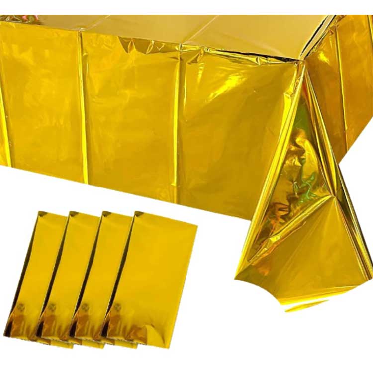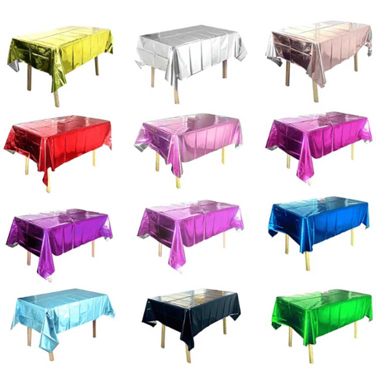 Folientischdecken werden für die Tischdekoration bei verschiedenen Feierlichkeiten verwendet. Es kann Flecken, Kratzer oder Beschädigungen auf der Tischoberfläche verhindern, und die Farben und Muster können auch dekorative Effekte erzielen. Es besteht aus einer speziellen, mit Aluminium beschichteten PET-Folie. Während des Herstellungsprozesses haben wir die Vakuumbeschichtungstechnologie eingesetzt, um die Festigkeit, Zähigkeit und Anti-Aging-Leistung der Tischdecke sicherzustellen. Darüber hinaus können seine hochdichten Moleküle das Eindringen von Suppen- oder Ölflecken wirksam verhindern und es verfügt außerdem über eine wasserfeste Funktion.