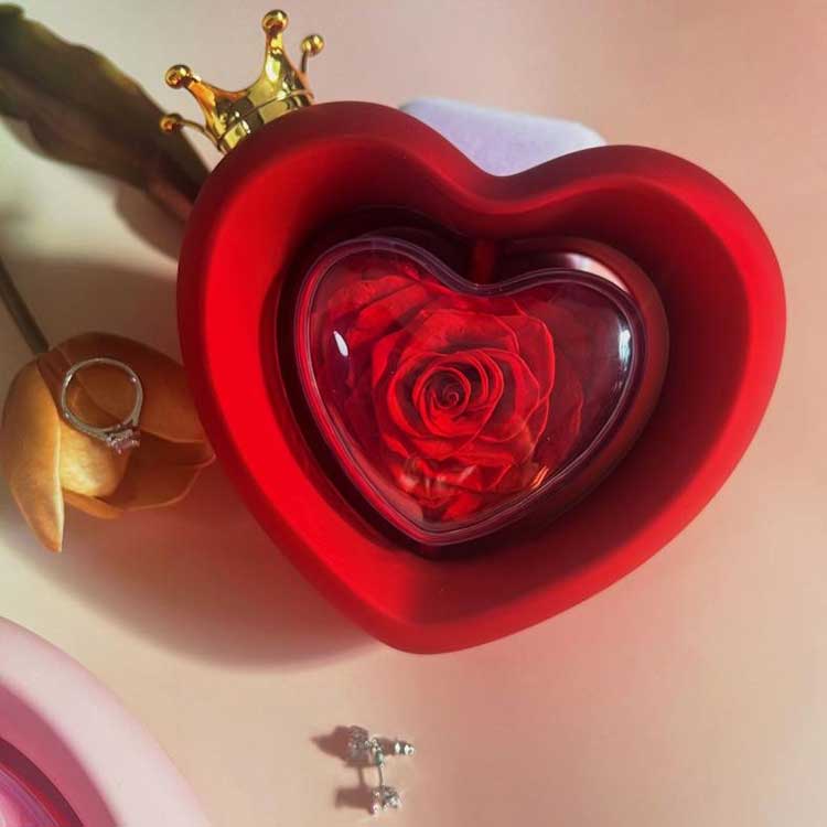 In der herzförmigen Rosen-Schmuckschatulle werden konservierte Blumen der Güteklasse A verwendet, deren Farbe und Textur nicht von frischen Blumen zu unterscheiden sind.
