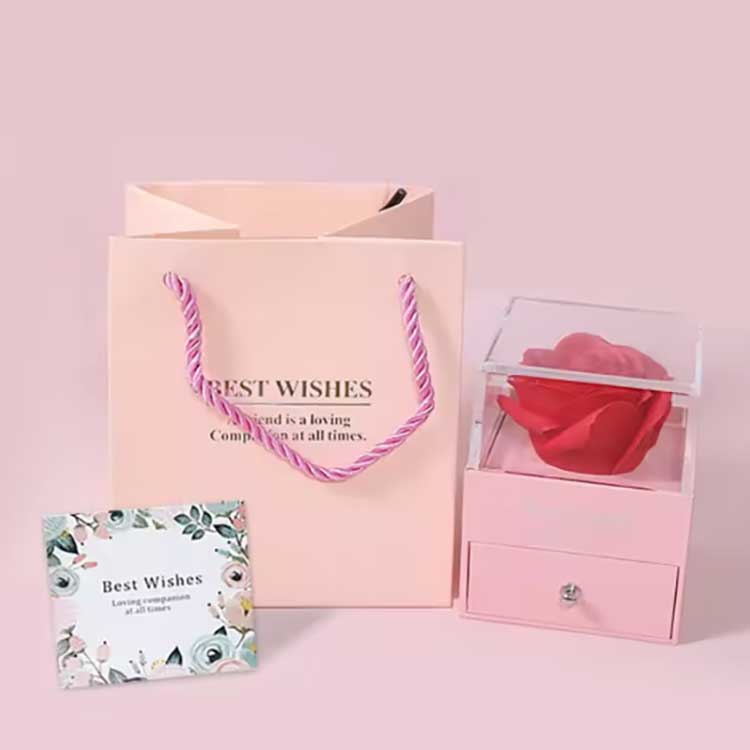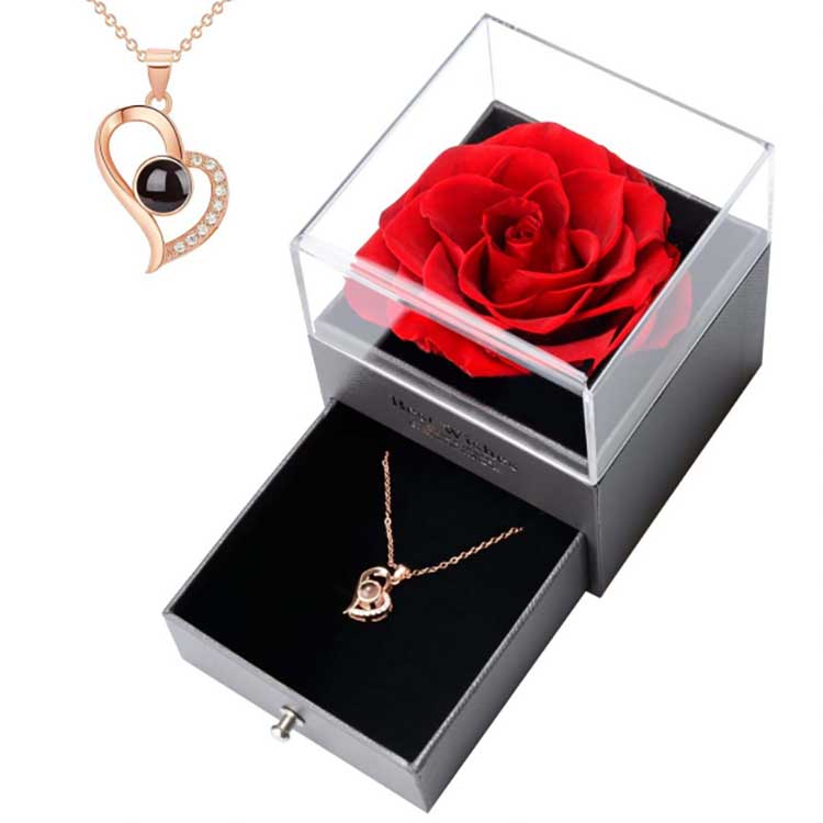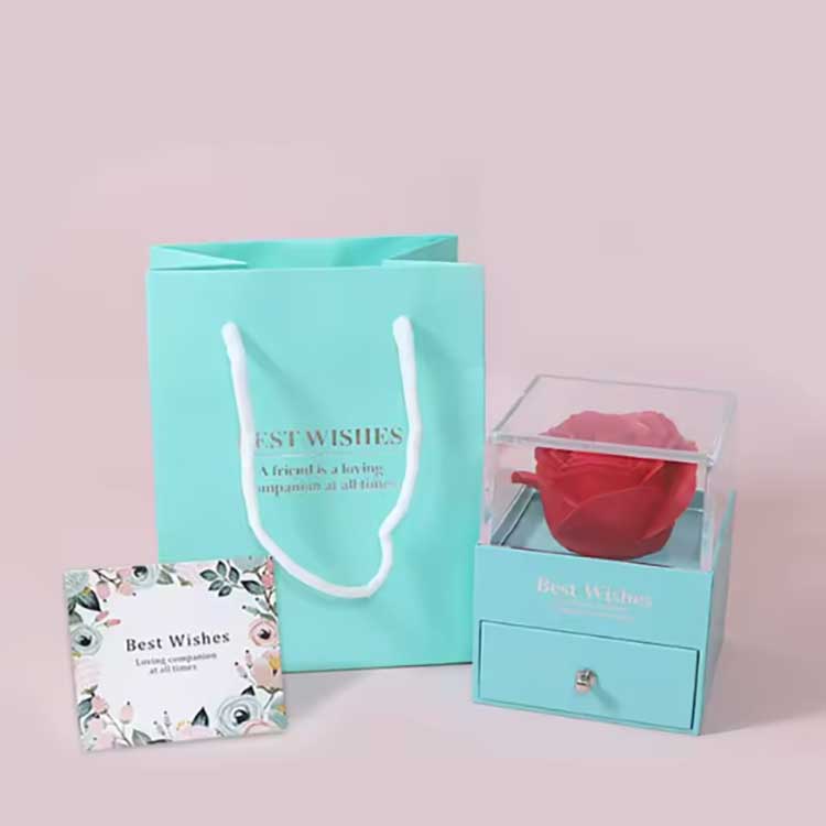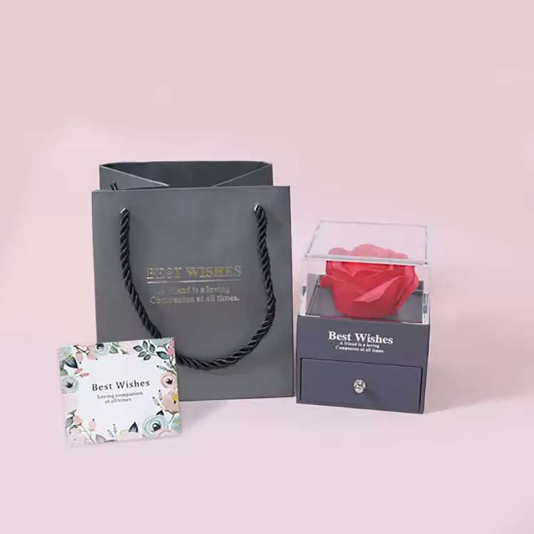 Die Immortal Flower Gift Box ist ein beliebtes Produkt. Die Accessoires bestehen aus hochwertigen Materialien. Jede Geschenkbox enthält eine leuchtende Rose und exquisiten Schmuck. Wenn Sie sie erhalten, können Sie sie direkt verwenden, ohne sie selbst installieren zu müssen. Sie können Ihren Freunden oder Verwandten gegenüber Ihre Gefühle zum Ausdruck bringen und Ihre Zeremonie voller Romantik und Überraschung gestalten.