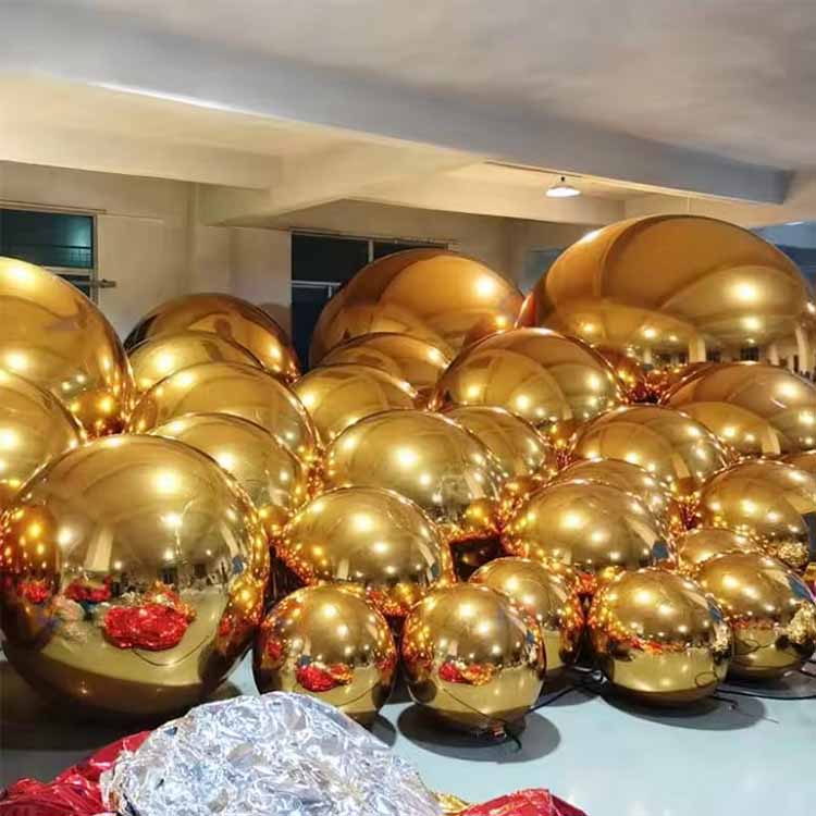 Aufblasbare PVC-Kugeln mit Spiegeloberfläche und reflektierenden Oberflächen, erhältlich in verschiedenen Größen und Farben.