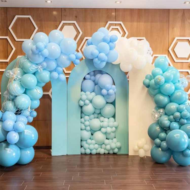 3. Luftballons mit Spezialeffekt: Perlmuttblaue Luftballons (simulieren Meeresspiegelungen) und paillettenbesetzte Luftballons (mit integrierten silbernen oder blauen Pailletten, um das Sternenlicht unter Wasser zu simulieren)