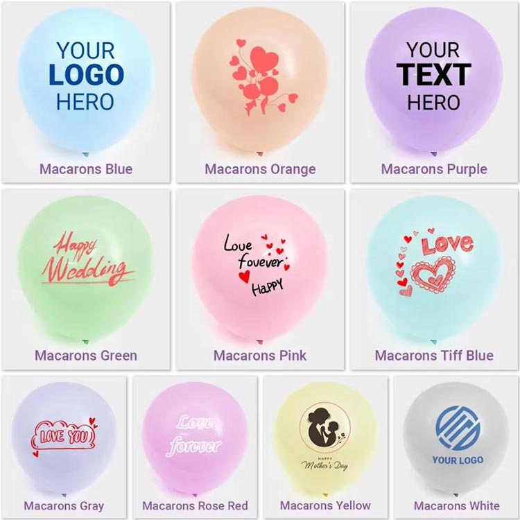 Machen Sie Ihre Markenidentität einzigartig. Unsere fortschrittliche Technologie für bedruckte Latexballons unterstützt bis zu sechs Farben für Ihr Logo oder Design, wodurch Farbbeschränkungen entfallen. Ob Farbverlauf oder komplexe Grafiken, wir können es Ihnen liefern. Wir bieten einseitigen, doppelseitigen und fünfseitigen Druck an. Sie können Ihr Logo entsprechend Ihren Anforderungen auswählen.