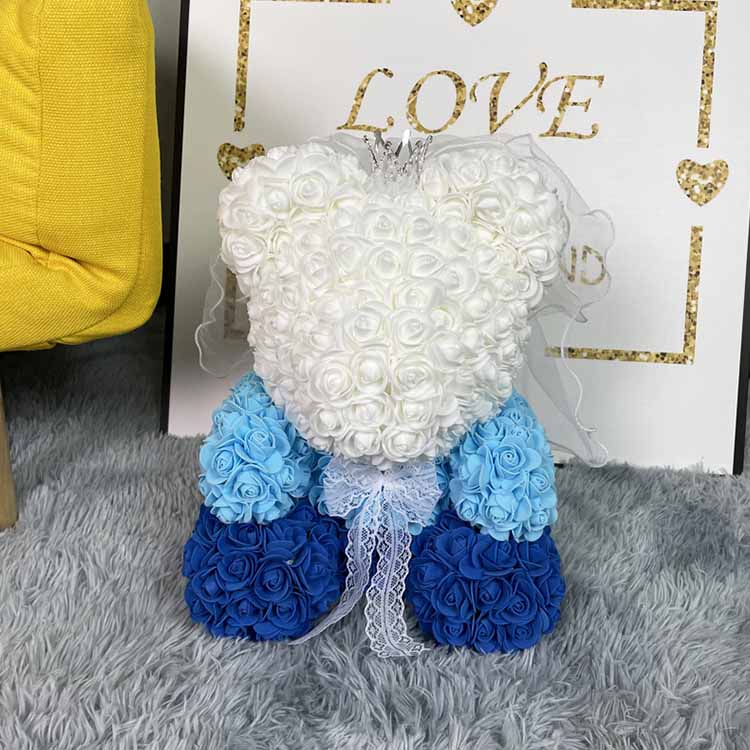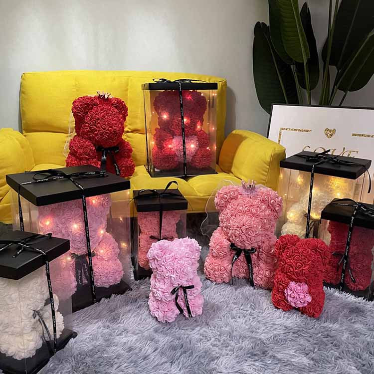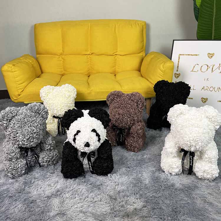 Das größte Merkmal des unsterblichen Rosenbären ist, dass er aus Nachahmungsrosen mit spezieller Technologie besteht, die die natürliche Schönheit realer Blumen behält, während gewöhnliche Plüschspielzeuge häufig und nicht so attraktiv sind. Darüber hinaus hat der unsterbliche Rosenbär einen höheren Sammelwert und eine emotionale Bedeutung.