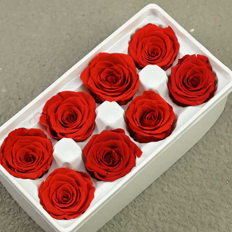 Konservierte Rosen, auch als Blumen bekannt, die niemals verblassen, werden aus frischen Rosen der Güteklasse A hergestellt, die über zehn komplexe Verarbeitungsschritte durchlaufen, darunter Dehydrierung, Bleichung, erneutes Färben und Trocknen. Diese Produkte bewahren die weiche Textur und natürliche Form frischer Blumen und verlängern gleichzeitig deren Blütezeit. Bei richtiger Lagerung sind sie 3-5 Jahre haltbar.