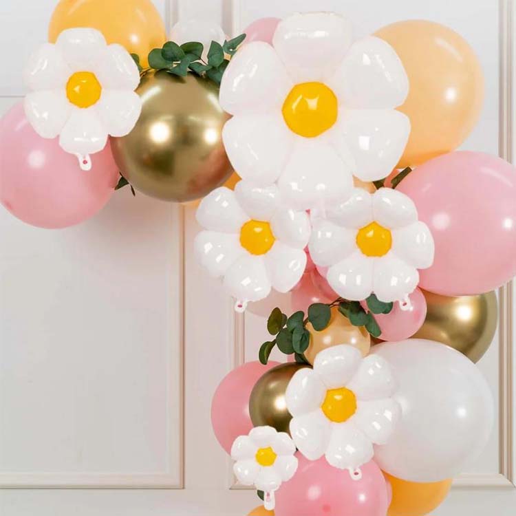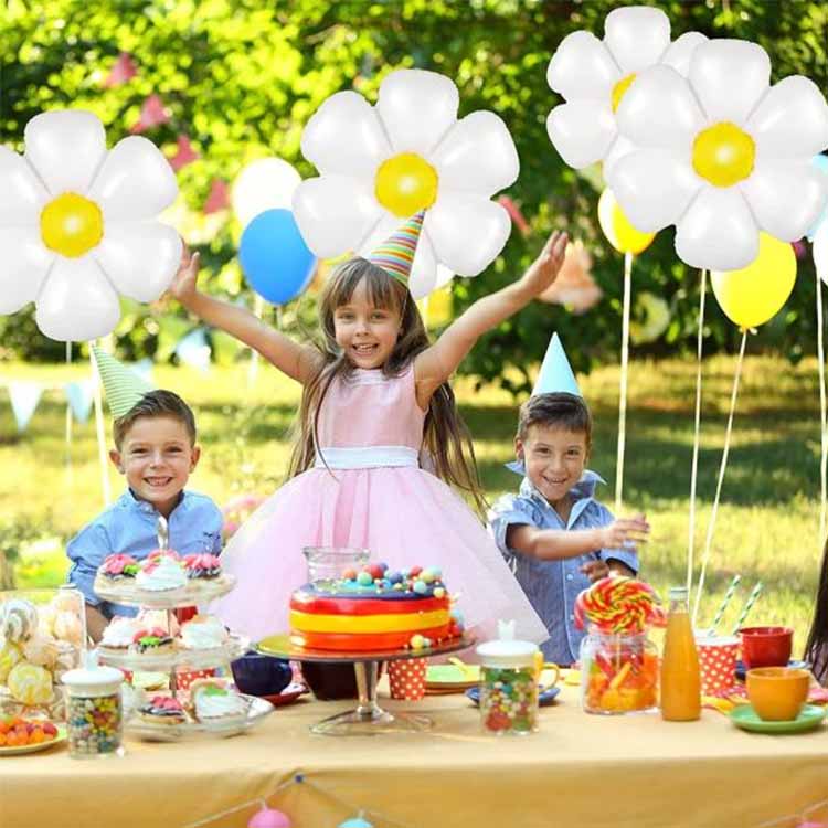 Geburtstagsfeier: Egal, ob es sich um einen Geburtstag für Kinder oder Erwachsene handelt, Sechs-Petal-Gänseblümchen-Folienballons können der Party eine glückliche und warme Atmosphäre bringen. Die Decke, die Wände, der Esstisch und an andere Stellen am Partygelände können auch Luftballons zu Ballonbögen, Ballonsäulen und anderen Formen machen oder Kinder mit Luftballons Fotos machen lassen.
