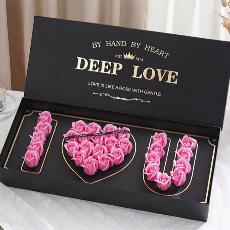 Unsere Seifen-Rosenköpfe-Blumenbox ist einzeln verpackt, um Quetschungen und Beschädigungen während des Transports zu verhindern. Die Schachteln bestehen aus verdickter Wellpappe, einem robusten und langlebigen Material mit hervorragender Druck- und Fallfestigkeit, das dafür sorgt, dass jede Geschenkschachtel in einwandfreiem Zustand ankommt.
