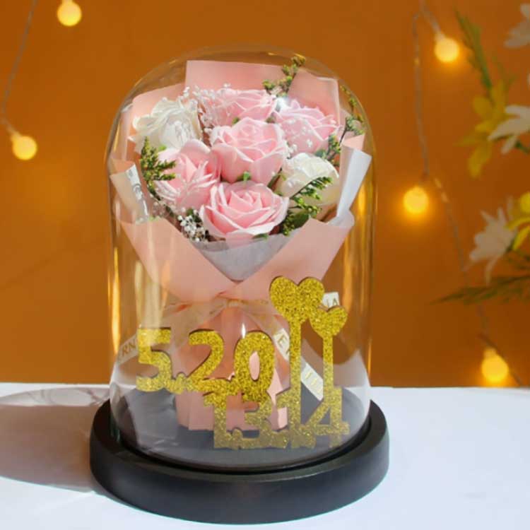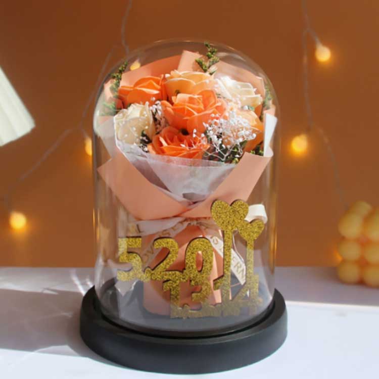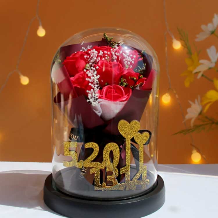 Dieser Rosenstrauß mit Glaskuppel zum Valentinstag besteht aus hochtransparentem Borosilikatglas, das eine bessere Lichtdurchlässigkeit als vergleichbare Produkte anderer Marken aufweist, und Sie können die Details jedes Blütenblatts mit bloßem Auge deutlich erkennen. Das Glasmaterial ist rein und frei von Verunreinigungen und lässt sich nicht leicht zerkratzen.